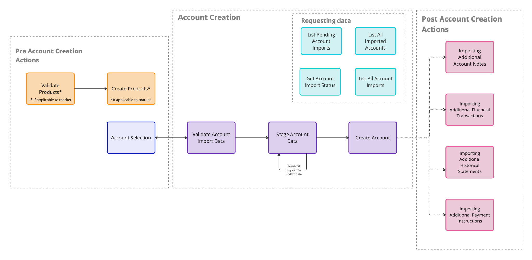 Account Import Guide: Step-by-step instructions for validating, staging, and creating accounts, along with expected responses.